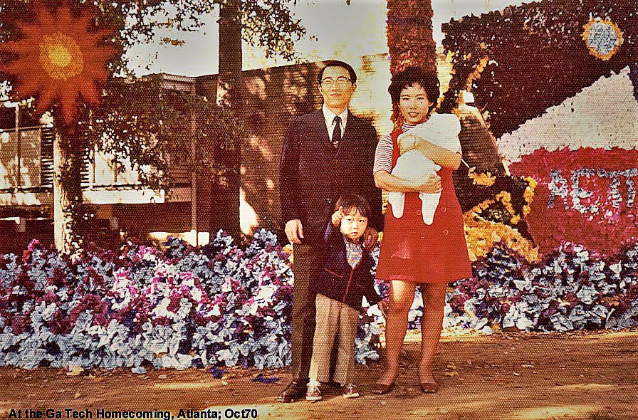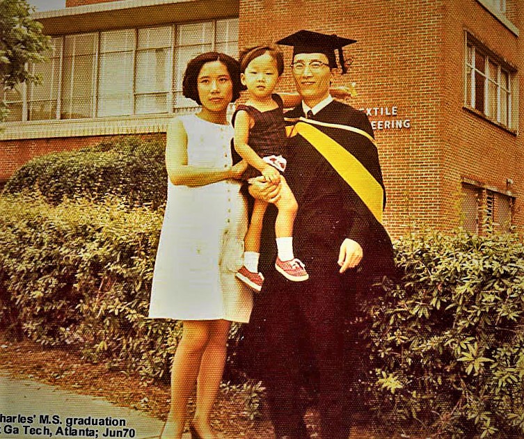 I left Seoul, Korea in the summer of 1968 to pursue my graduate work at ‘Georgia Tech’ (Ga Institute of Technology) in Atlanta. My wife and son, 18 months old then, joined me in the fall to start our new family life in Atlanta. After getting a master’s degree, I worked in a faculty position as an assistant research engineer in the School of Textiles at Tech for two years. During that time our second child, a southern belle, was born. After three and a half years in Atlanta, we left for Clemson, South Carolina, for me to seek a doctorate degree in Textile and Polymer Science at Clemson University.