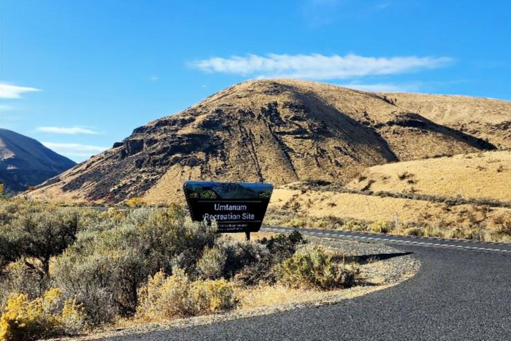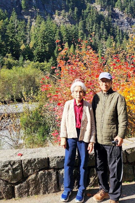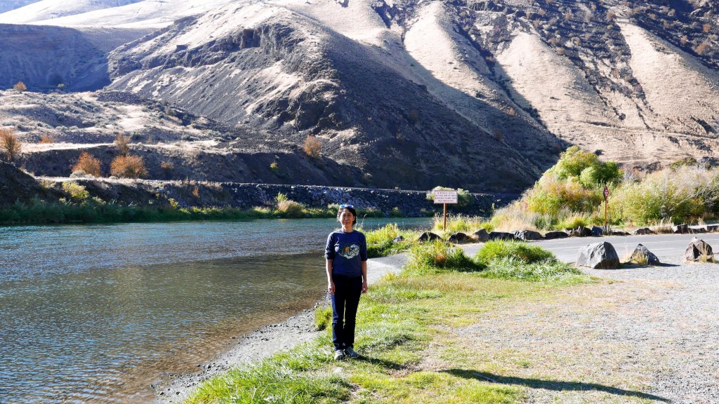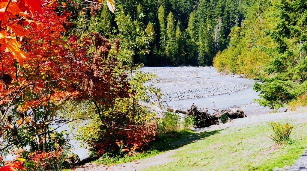 On a bright and beautiful autumn day, we, three including our daughter, ventured out to see fall colors around ‘Mt. Rainier National Park’ and its surrounding areas, Naches, Yakima and Umtanum, WA. We set out driving southeast along US Hwy 410, skirting along east side of Mt. Rainier down to Yakima. From there, heading to the north we followed WA821 (instead of I-82) for about 20 miles and merged into I-90 to return home. The 20-mile stretch of WA821 through the American Indian towns, like Umtanum, is a gorgeous scenic highway along the ‘Yakima River,’ and a railroad track along the other side across the rive