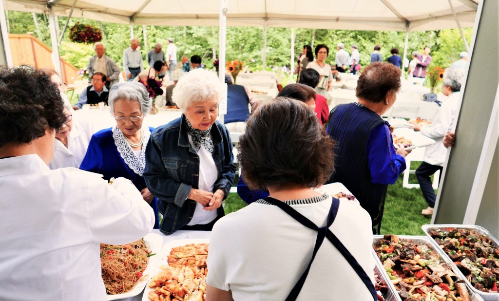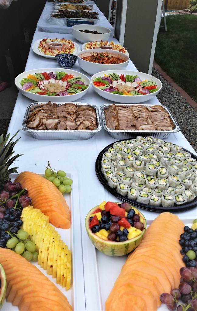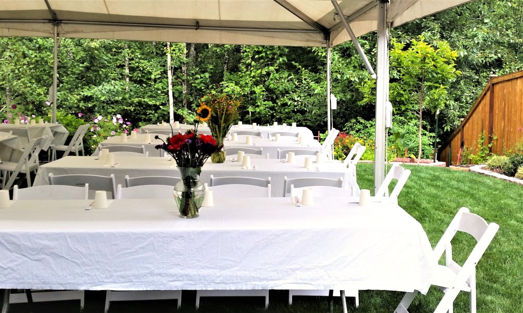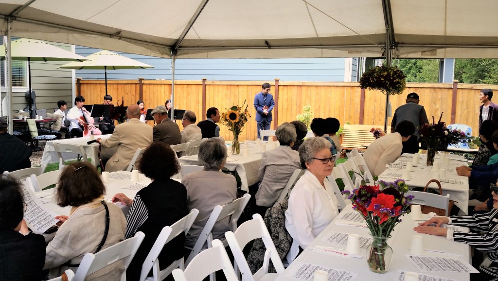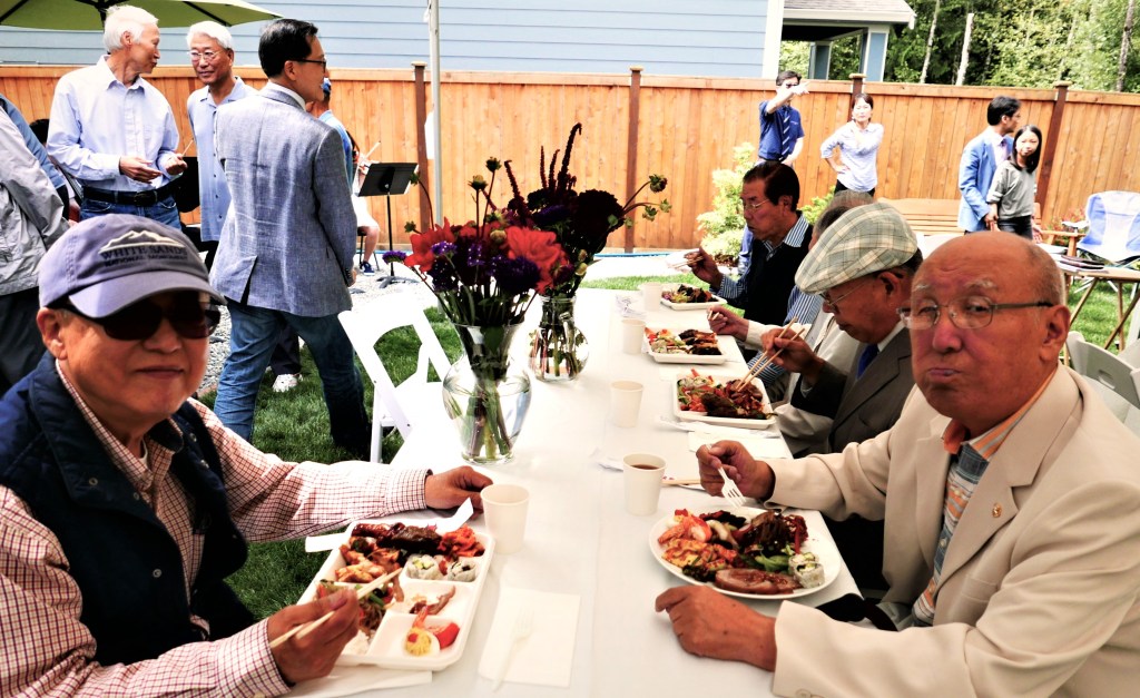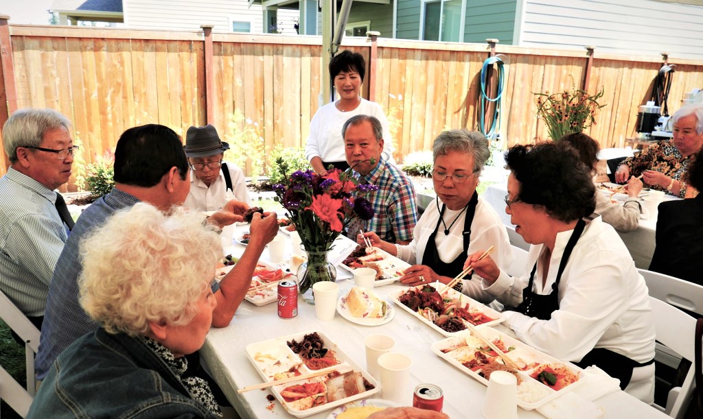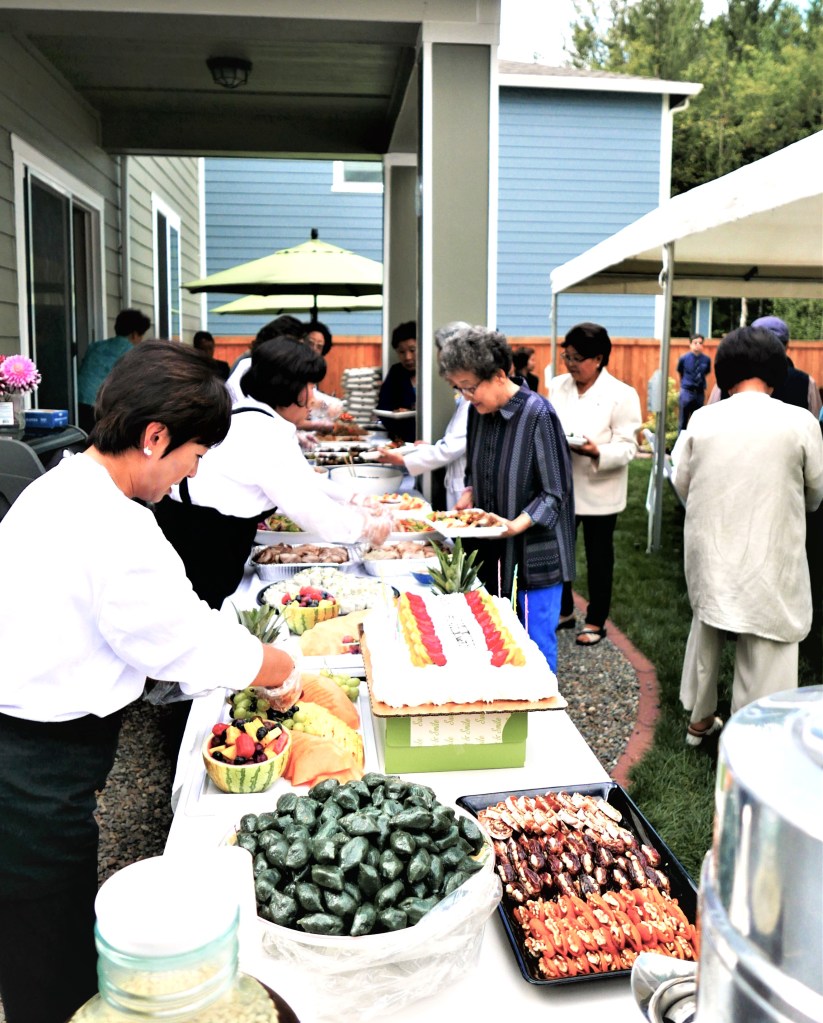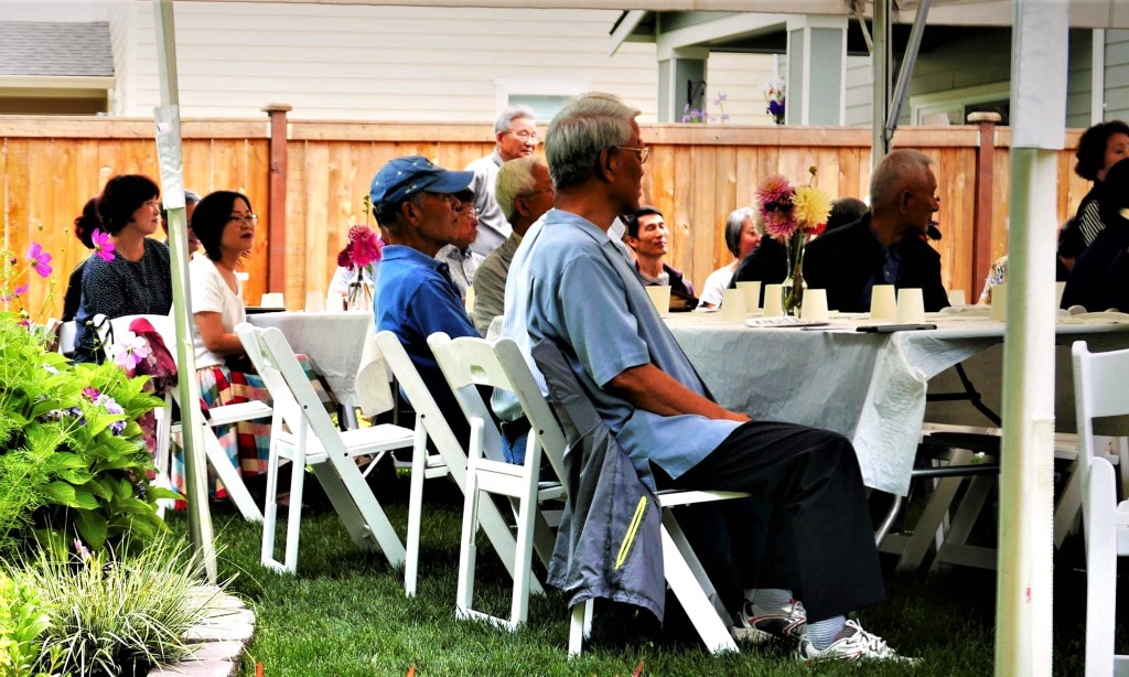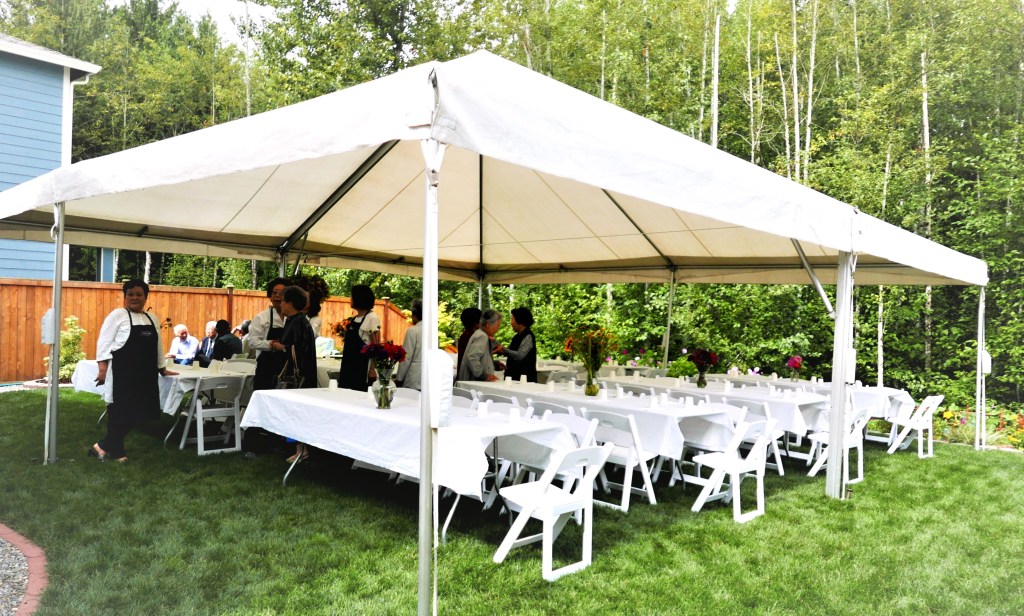8순(八旬) 잔치라기 보다는, 집 뒷뜰 잔디위에 큰 Tent를 치고, 우리 교회 목사님 세 가정과 ‘에녹 선교회’원 (70세 이상 교인)들과 몇몇 다른 교우분들을 모시고, 음식점에서 주문한 음식을 들면서 교우간의 친목을 즐기는 모임을 가졌다.