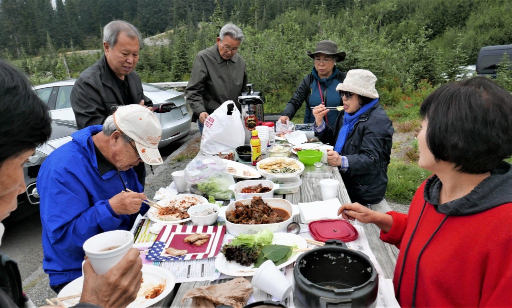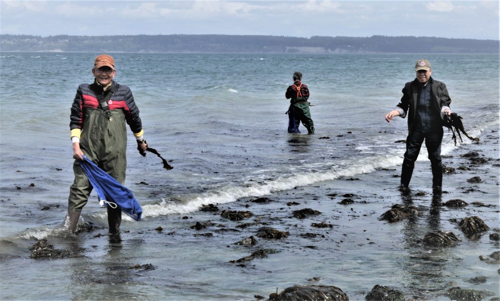 오늘의 목적지 ‘Fort Flagler State Park’로 가는 도중 처음 들린 곳은 ‘Twanoh State Park’ 이다. [Apr’18; ’Twanoh State Park,’ WA]… 길고 긴 바다 Channel ‘Hood Canal’ 쪽빛 물결 옆 공원에서 우리 ‘갓4 구역원들이 아름답게 서로들 Pose를 취하고 …아름답고 긴 바닷물 ‘Channel’을 이루고 있는 ‘Hood Canal’을 접하고 있는 이 State Park는 주위 경관이 참 아름답다.두번째 쉼터 ‘Potlatch State Park’도 WA 주에서 가장긴 바다 Channel ‘Hood Canal’에 접한 아름답고 한적한 곳이다.이 큰 나무는 보통 나무들과 다른 점이 나무 잎이 주로 위에 있는데 이 나무는 둥치 맨 아래부터 시작하는 것이 특이하다.여기서 가는 도중 점심은 김진예 권사님이 손수 만들어 온 김밥을 북어국과 함께 먹었다. 맛있는 음식을 만드느라 수고한 분에게 크게 감사를 드린다.이제 ‘Fort Flagler State Park’에 도착하여 곧 바로 미역따기 작업에 들어 갔다. 구역원 네분이 긴 고무 장화/바지를 입고 물이 얕은 해안에서 떠 다니는 미역을 낫이나 칼로 잘라서 채취를 한다. 아직 날씨도 물도 차고 하여 좀 고역이지만 이때가 미역 따는 최적기라고 한다. [Apr’18; ‘Fort Flagler State Park,’ WA]이곳 “Marrowstone Island’에 있는 ‘Fort Flagler State Park’는 Seashore 경치가 참 아름답다. 긴 해안선 따라 수많은 부목이 (Driftwood) 또한 바닷가 운치를 더한다.‘Fort Flagler State Park’ 에서 미역따기를 끝내고, 다음은 조개캐기를 (Clam digging) 하러 가까운 뻘로 이동하였다. 미역따기도 그렇지만 특히 Clam digging 하는데는 바닷물이 빠져 나가야 할 수 있기 때문에 조수 간만의 Timing을 알고 준비를 하는 것이 필수 이다. 장비로는 호미와 장갑이면 충분한 것 같다.모두 열심히 조개 캐기를 하고 있다. 오늘의 수확은 이 유리병 두개 분량이다. 조개캐기 에는 Vege garden에 쓰는 Plastic seat 하나를 갖고 다니면 앉아서 일하고 허리가 좀 덜 아플 것 같다.조개캐기를 끝내고 이제는 집결지 교회로 돌아가는 길이다. WA Hwy-3를 따라 남쪽으로 Tacoma로 오는 길에, ‘Port Gamble,’ WA 조그만 역사적인 Town을 들렸다. 토요 늦 오후인데 Museum이 벌써 문을 닫아 아쉽게 들어가지 못하였다. 모든 것이 깔끔하게 차려진 항구 마을이다.‘갓4구역’ ‘Fort Flagler State Park’ 미역따기와 주위에서 조개캐기 야유회 오가는 길 아름다운 Scenery …이날의 모든 일정을 마치고 교회로 가서 헤어지기 전에, 김용태 집사님 가정 주선으로 ‘강남식당’ 에서 즐거운 저녁식사를 함께 나누었다. 구역원들 끼리 야유회를 통하여 참으로 즐거운 친교를 나누고, 대 자연 속에서 미역따기와 조개캐기를 즐기고, 또 들리는 곳들의 지리, 역사, 문화를 접하게 되는 귀한 시간을 가졌다. 구역장 김상안 집사님의 준비와 많은 노고에 고마움을 전하고이 모임을 허락하시고 오가는 길 안전으로 인도하신 하나님께 깊은 감사의 기도를 드립니다.
