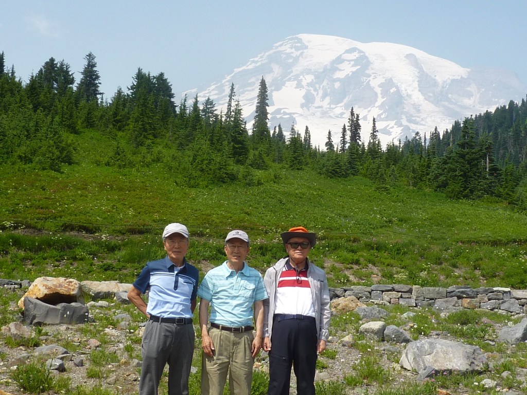 여기서 부터 ‘Yellowstone National Park,’ Wyoming 이다. 미국 최초의 국립공원 ‘Yellowstone National Park’는 Wyoming 주 맨 서북부 모퉁이에 방대한 부지를 차지하며 자리잡고 있고, 거대한 초원을 서식지로 Buffalo, Moose, Bear 등 큰 동물이 거닐고, 유황 간헐천이 (Geyser) 뿜어나와 하늘로 치솟고, Hot springs가 여기저기 흩어져 있는 자연의 신비와 아름다움을 지닌 대 국립공원 이다. Folk song, “Oh, give me a home where the buffalo roam, where the deer and antelope play …” ‘Home on the range’를 연상케하는 ‘Yellowstone National Park’ 주위의 풍물들 … 유황 Hot springs … ‘The Old Faithful’ geyser가 뿜어 나오는 시간에 맞추어 모여든 관광객들 …‘Old Faithful Geyser’는 약 90분에 한번 eruption이 일어나고, 길면 약 5분간 치솟는 높이가 130 feet 정도라고 한다. 정말 ‘Nature’s Wonder’ 가운데 하나인 것 같다.산에서 내리는 눈/빗물과 유황물이 강으로 흘러나와 큰 바다물과 합치게 되어있다.At ‘Mammoth Hot Springs,’ Wyoming … ‘Yellowstone National Park’의 North entrance로 들어오면 ‘Mammoth Hot Springs’가 있다. Limestone이 비, 바람, 온도에 부식되어 이루어진 회귀한 모습의 바위돌 들이다. 보통의 경우는 이런 현상은 동굴 (Cave) 안에서 이루어 지는데, 여기는 마치 동굴 안이 확 뒤집혀 밖으로 나온 현상이라고도 형성된 과정 표현을 쓰기도 한다. 많은 관광객의 기념사진 배경으로 각광 받는 ‘Liberty Cap’ 바위가 아래에 보인다.▼녹아 내린 Limestone이 Terrace를 이룬 것이 사진 오른쪽에 ‘Palette Spring Terraces’ 이고, 사진 왼쪽에 시커먼 것이 ‘Devil’s Thumb’ 이다.‘Mammoth Hot Springs’ 입구 부터 시작하는 우리가 선 이 Boardwalk는 1.75 miles의 길이로, 이곳 Upper and Lower Terraces에 이어져 있어 안전하고 편안하게 걸어 다니며 주위 경관을 볼 수 있다.‘Orange Spring Mound’가 옆에 눈 같이 하얀 Terrace의 색상과 대조를 이루며 보이고 있다.다음 관광지는 ‘Grand Canyon of Yellowstone’ 이다. 큰 폭포가 흘러 내리는 협곡이 장엄하고 아름답다. 폭포의 높이가 308 feet가 되는 ‘Lower Falls of the Yellowstone River’의 웅장한 모습 …At the beautiful ‘West Thumb Geyser Basin’ …넓고 아름다운 ‘Yellowstone Lake’를 뒤로 배경으로 하고 앞에 보이는 ‘West Thumb Geyser Basin’ 에는 조그만 Geyser 들이 여기저기 제각기 다른 모양과 색상을 띄우며 뽑내듯 흩어져 있다. At ‘West Thumb Geyser Basin’ … ‘Yellowstone Lake’ 앞에 펼쳐진 형형색색의 Geyser들 …넓고 넓은 ‘Yellowstone Lake’ 에서 Kayak 뱃놀이는 참 멋진 것 같다.‘Yellowstone Lake’를 배경으로 기념사진 한 Cut …우리의 마지막 관광 행선지는 ‘Grand Teton National Park,’ Wyoming 이다. 하늘을 찌르듯 눈 덮힌 높은 산의 위용이 아주 장관이다.미 전국에서 Ski Resort로 이름 있는 ‘Jackson Hole,’ Wyoming 에서 Tram cable car를 타고 10,000 feet가 넘는 산 정상에 올라 주위 Teton Mountain range를 관망하는 여정이다.산뜻하게 아름다운 Ski 관광 도시 Jackson, Wyoming은 ‘Jackson Hole Valley’에 위치한 조그마한 도시로, 유명한 Ski Resort가 세개나 있고 비행장이 바로 가까이 있어 Skier 들이 자주 찾는 깨끗한 소 도시 이다.건물 뒤로 Ski slope 들이 여기 저기 보인다.Tram cable car를 타고 10,000 feet이 넘는 산 정상에 올라 가서 가까이 장엄한 Teton mountains를 관망하는 것이 참으로 멋지다.Cable car가 향하여 가는 10,000 ft 이 넘는 (‘백두산’ 보다 더 높음) 산 정상이 사진 가운데 위쪽에 보인다.15분이 채 않되는 Tram ride 중에 아래로 내려다 보는 경치가 또한 너무 아름답다.이제 산 꼭대기에 다 올라 와서 주위에 펼처진 눈 덮인 Teton Mountains 설경이 괭장하다. 눈덮인 산 꼭대기에는 부는 바람은 이만저만이 아니게 강하다. 산 정상에 상당히 큰 Cafe가 있어 Coffee/tea, Waffle, Chocolate 등으로 친구들과 Break을 갖는 시간이 즐거웠다. ‘Grand Teton National Park’ 관광은 미 National Park로 가장 역사가 깊은 ‘Yellowstone National Park’를 보러 오는 관광객들에겐 꼭 같이 보아야 할 명소인 것 같다. ‘백두산’ 보다 한배 반쯤 더 높은 이 산 꼭대기에서 주위 파란 하늘과 산과 들을 배경으로 찍은 사진에 ‘Grand Teton Mountain Range’의 위용이 너무나 장엄하고 아름답다.