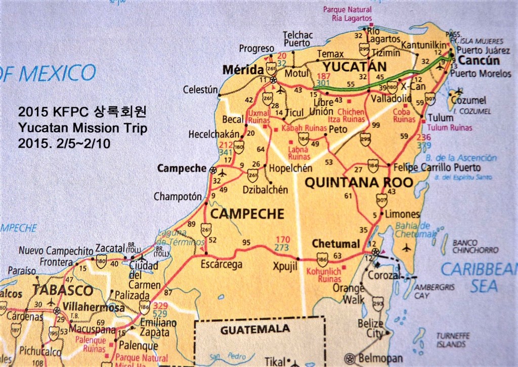2015년 2월 Greensboro, NC ‘제일 장로교회’ ‘상록회’ Seniors Group 14명은 담임 목사님과 인솔 장로 한분과 함께 (도합 16명), Mexico Yucatan에 있는 교회 선교지로 5박6일 간의 Mission trip을 떠나, 우리 교회의 선교지 ‘Sacalum,’ Yucatan에 있는 ‘시내산 교회’를 중심으로 우리 Mission 사역이 이루어졌다.